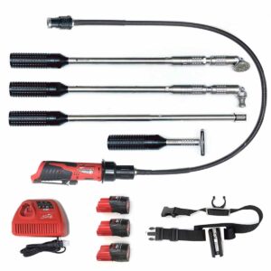 Die Verbindung zwischen der verstärkten flexiblen Antriebswelle und den Schleifschäften ist magnetisch und wasserdicht. Die beiden Turnflex Schäfte sind mit dem Turnflex-Mechanismus ausgestattet, der ein schnelles Umschalten von einer geraden auf eine gebogene Position ermöglicht und so die perfekte Positionierung des Schleifkopfes erlaubt.